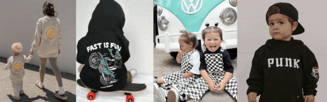 And for the mom who likes to match without going full Pinterest-mom, Little Trouble’s Mommy & Me sets are absolute perfection. These viral TikTok-approved outfits (think tattoo patches and moto vibes) bring comfort, chaos, and cool-mom energy into one fun package. From bold graphic tees to checker overalls, these pieces are made for memory-making in serious style.